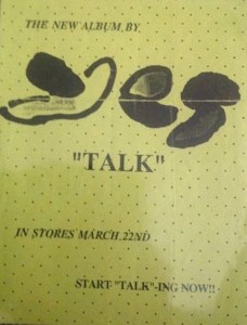 When I came home from work one day, there was a strange letter for me. It was from Victory Music in California, the then-current record label of Emerson Lake & Palmer, and where I sent my letters to Carl. It was a yellow paper advertisement, and in big black letters it read “YES,” and smaller letters underneath it read “Talk.” I immediately thought it was my yes reply from Carl to my question. I wrote, “are you getting my letters? Send me a yes or no.” In smaller print at the top, it read “The new album by.” It was an announcement for the new album by YES called “Talk.”