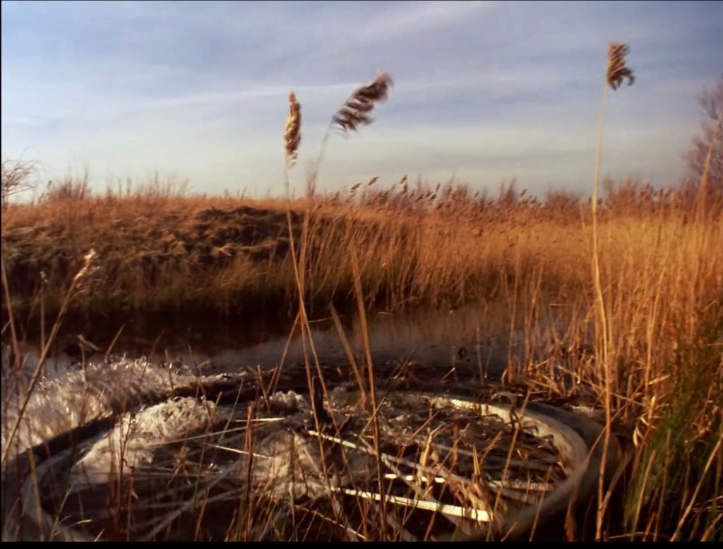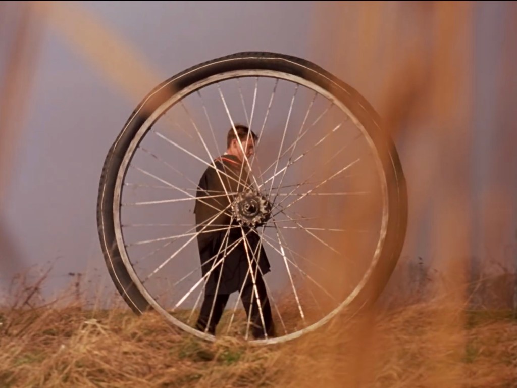 The man in the black academic gown rolling the big wheel represents Sting. He was a teacher and, in his videos, has worn the black academic gown and cap. He’s the big wheel, a person with a great deal of power and influence. Later, the big wheel falls by itself into the saturated field. It shows that Sting, the big wheel, will be all washed up in his field. This indicates that “Fields of Gold” love song is another lie.