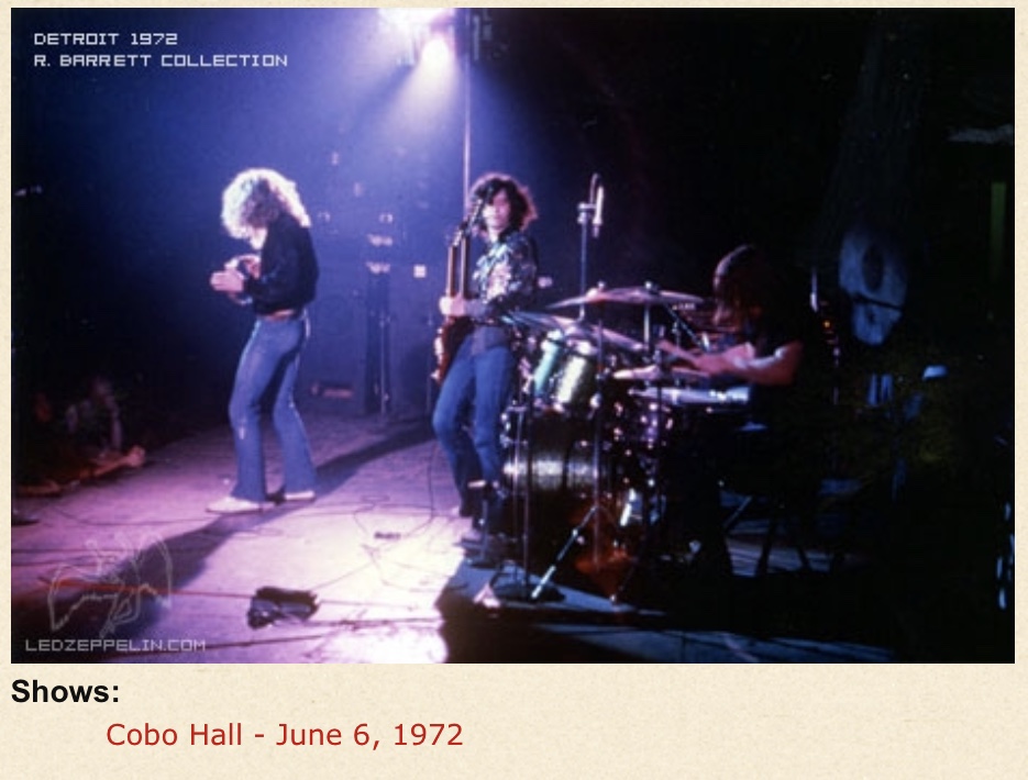 My girlfriend and I wanted to attend the Led Zeppelin concert at Cobo Hall. The show was on June 6, and Detroit was the first gig of their 1972 North American tour. I had a new cassette tape recorder, and I wanted to record some of the show because John Bonham was a great drummer, and Carl admired him. I planned to play the recording back to Carl when I saw him next. They were the top rock drummers in the world at the time. We didn’t have tickets, but we thought we’d take our chances that someone might have extra tickets or we could get in backstage somehow.
