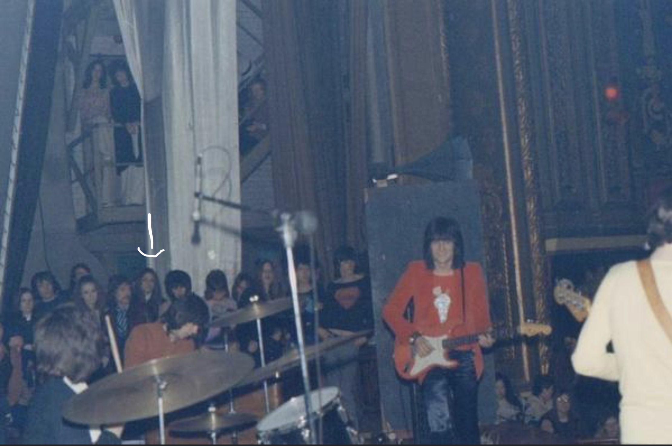 One night, I was late for the concert and drove myself there, and while walking into the dressing room area to look for my friends, I saw Ron Wood further away on stage testing equipment. I waved and said, “Hi,” he said, “Hi.” He kept looking and smiling, so I ran up and tried to kiss him, but we turned our heads simultaneously and bumped our noses. We both yelled, “OW!!” it hurt for a while. But we laughed. My one chance to kiss a future Rolling Stone, and I failed. But he was a friendly and fun guy, as were all the guys in the band, entirely down to earth.