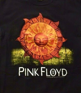On the back of the t-shirt, I wrote the words “The Right One’s Back” from the lyrics “when the Right One walks out of the door,” and I drew the Pink Floyd boatman logo in black. I didn’t take a photo of it, so I can’t show it here. I wrote in a letter to Gilmour that I’d be the one in Detroit with the big sun on my t-shirt.