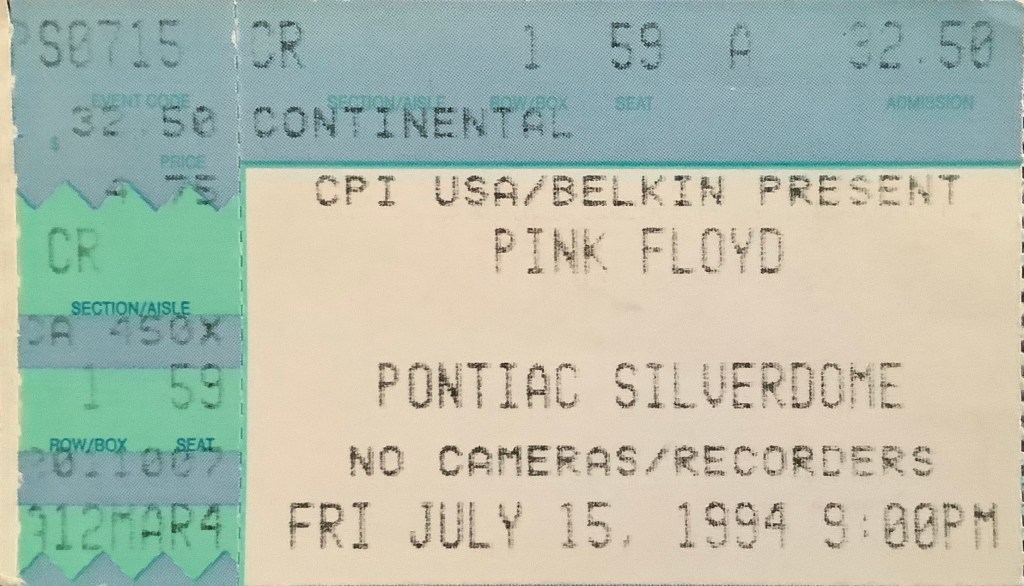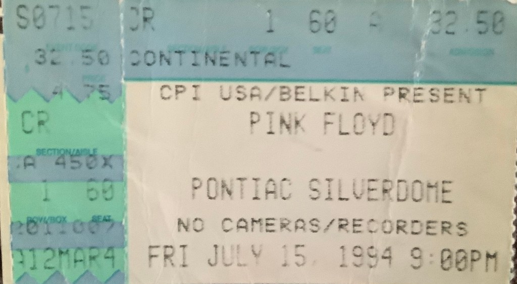 After I heard The Division Bell album and realized that I could interpret the lyrics and artwork, I knew I had to go to the concert and see Pink Floyd play it Live. I heard that tickets were going on sale for the July 14th Detroit show, and I just froze up. I thought, what am I suppose to do now? I just waited a bit and thought it over. After several days I looked in the local newspaper classified section for people selling tickets. There was a ticket broker in my area, and they listed front-row seats. I knew I had to have them. Music was never more important in my life until The Division Bell, and I had to take in every bit of excitement and healing that a concert could bring me.