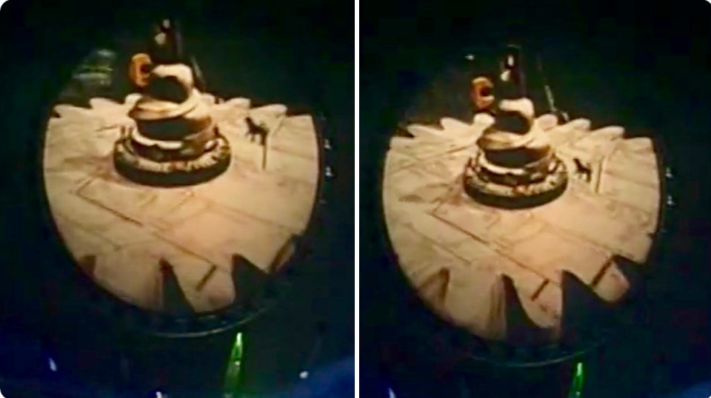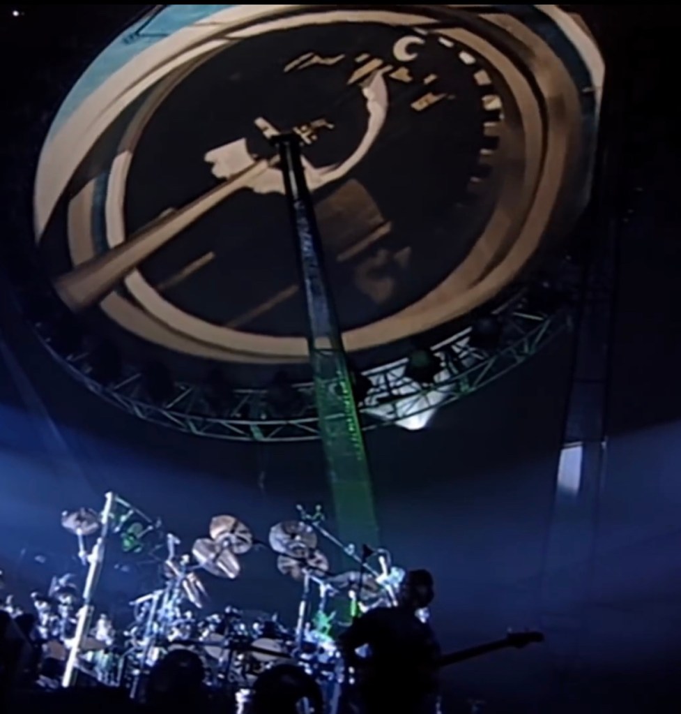 During the restored and re-edited Pulse concert, the wheel is tilted, which draws attention to the lyrics, “Try to keep up with the turning of the wheel.” And the Sundial is not shown, directing fans to investigate.