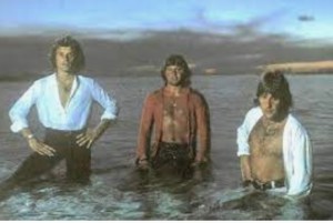 The beach is a reference to the 1978 Emerson Lake & Palmer album called Love Beach. In some photos for the album, ELP are shown fully clothed, standing in water above their knees.